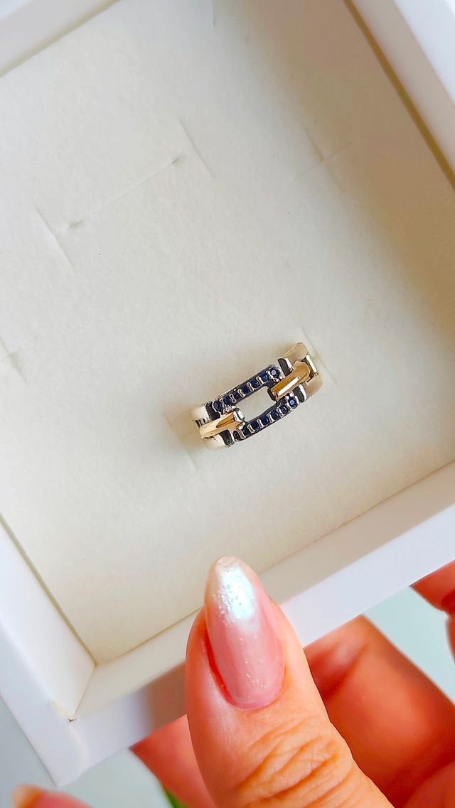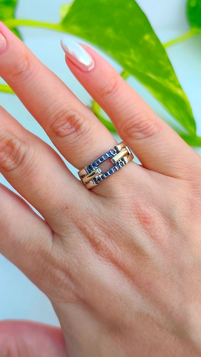 Anillo de nuestra línea Premium de Plata, Oro y Circonias azules